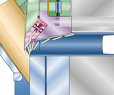 刀具的更换间隔取决于磨损程度,但通常为每班一次。 该设置旨在快速更换磨损部件,并可以调整刀具角度以控制切屑尺寸。
